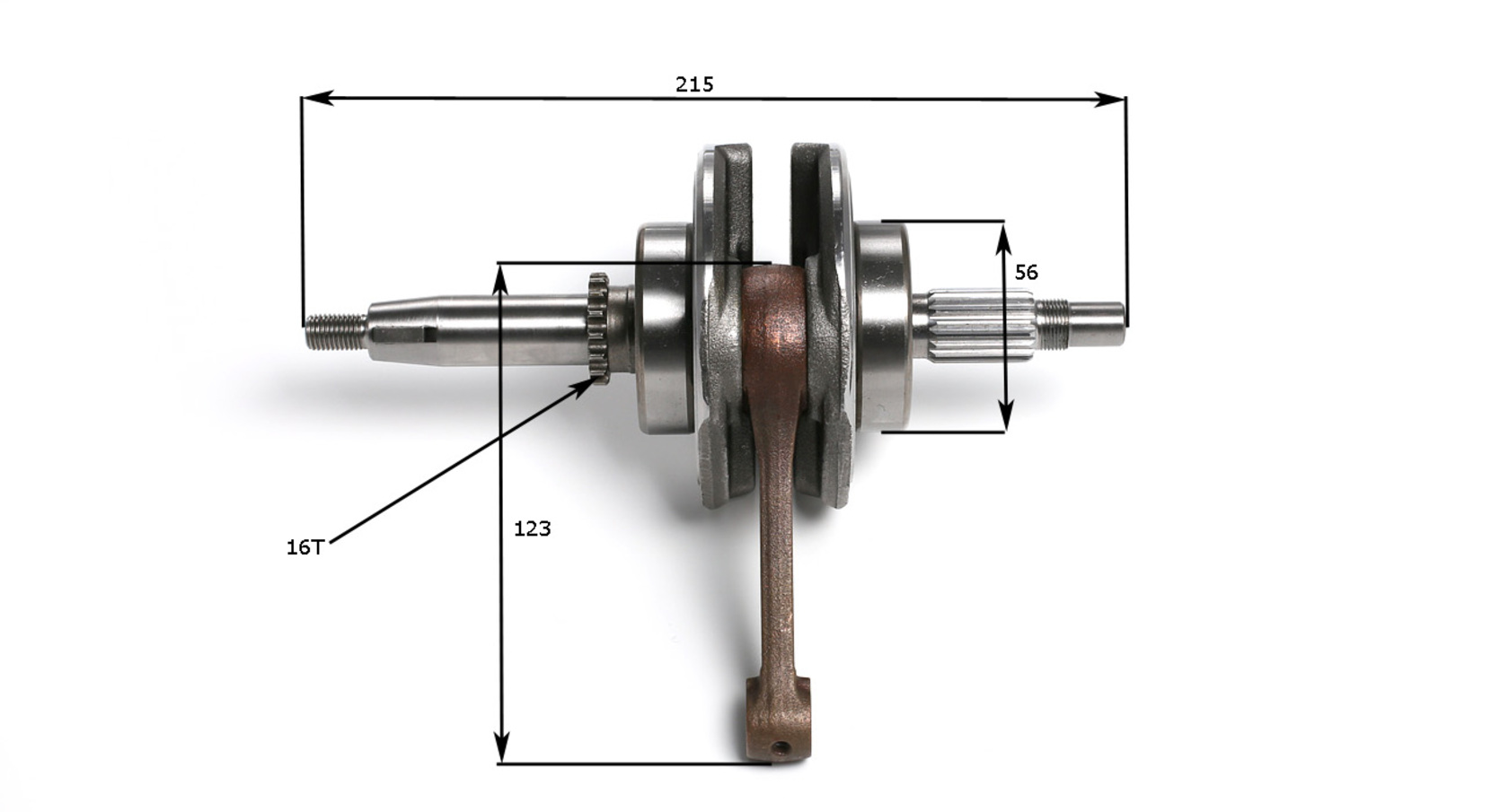 • • Длина шейки под подшипник: 56 мм