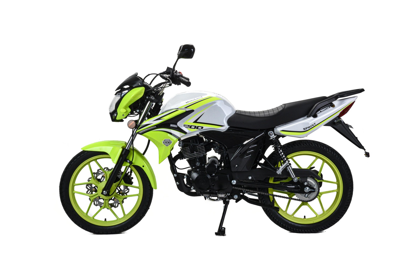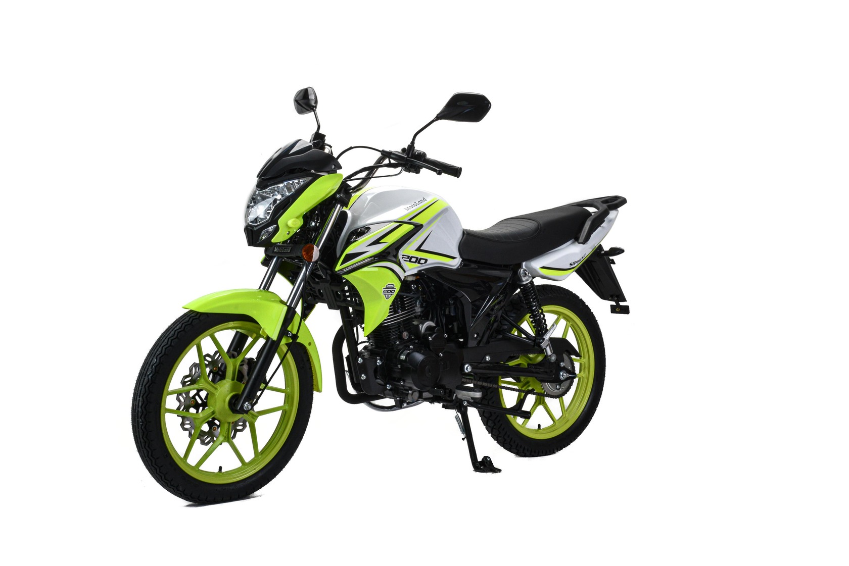 MOTOLAND SPRINT 200 - отличный вариант байка для тех, кто только решил приобщиться к мотокультуре и пересесть на двухколесную технику основательно, ведь он небольшого размера и легкий.Данный мотоцикл зачастую используется в автошколах для обучения учеников, ведь научиться водить на нем проще простого.Расход топлива 3,7л. на 100км.Мотоцикл оснащен бензиновым 200-кубовым двигателем 164FML с балансиром ,карбюраторной системой питания PZ30. Охлаждается движок воздушным путем. Механическая коробка передач пятиступенчатая. Для запуска двигателя имеется как кикстартер, так и электростартер.Работа подвески мотоцикла организована на базе стандартных компонентов: передней телескопической вилки и двух задних амортизаторов.Размер колес 18/18. Колесные диски литые