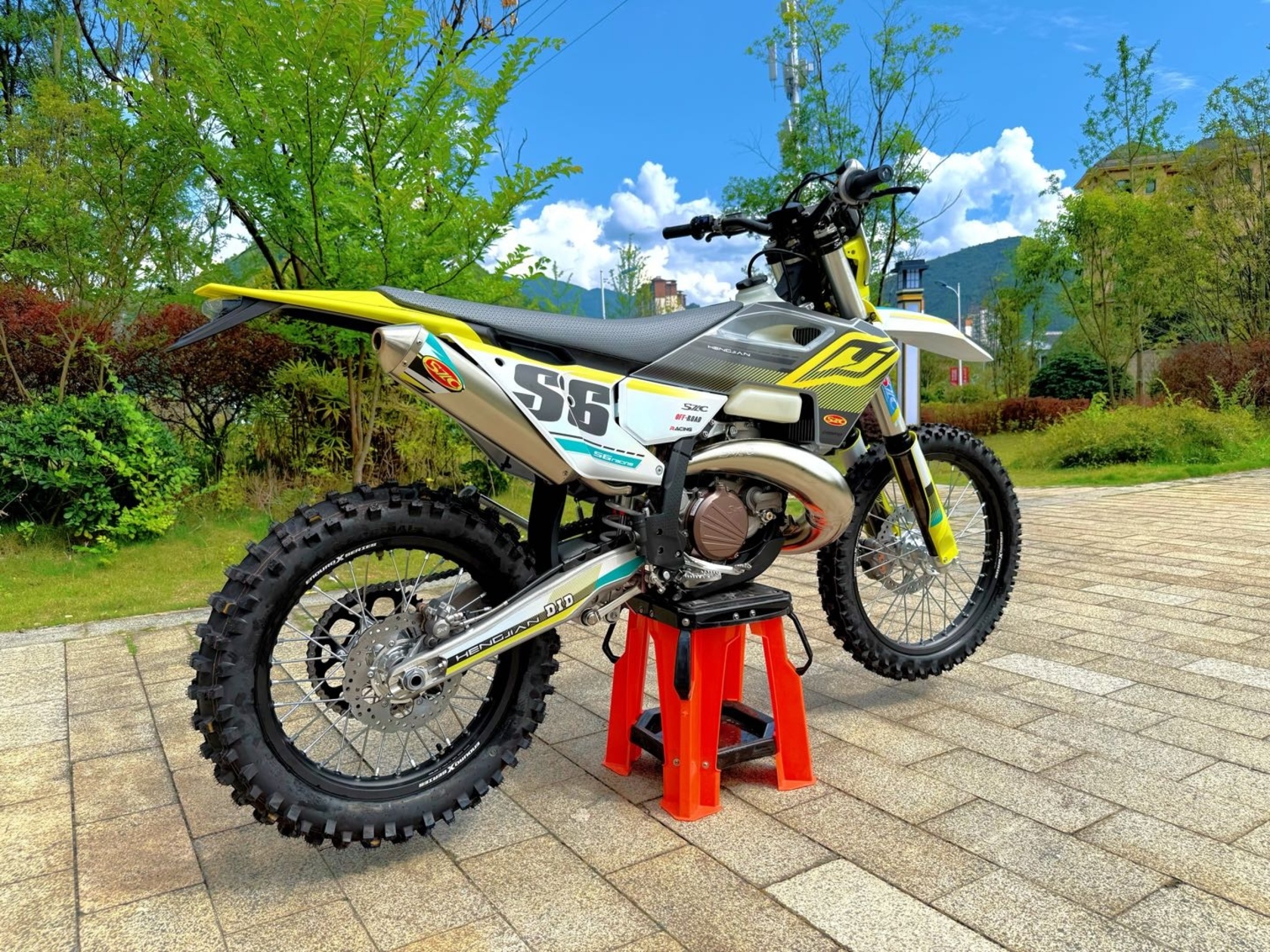 Hengjian S6 Z300 — это 2-тактный эндуро-мотоцикл 2025 года выпуска, позиционируемый как аналог моделей Husqvarna TE300 и KTM EXC300. Он сочетает доступную цену с техническими характеристиками, близкими к топовым европейским аналогам.Высокая мощность. Мощность двигателя — 57 л. с., максимальная мощность — 42,6 кВт.Максимальная скорость — 150 км/ч.Водяное охлаждение.Гидравлическое сцепление для идеального контроля.Увеличенный бензобак для долгих поездок — 9 л.Регулируемая передняя подвеска (сжатие/отбой/преднатяг пружины).Регулируемый моноамортизатор (сжатие/отбой).Копия двигателя Husqvarna TE300 с прогрессией.Передняя подвеска — SZC открытый картридж, версия PRO. Длина — 940 мм, диаметр пера — 48 мм. Есть регулировки сжатия и отбоя.Задняя подвеска — амортизатор SZC OPTIMA, регулируемый (сжатие/отбой). Длина — 480 мм.Передняя подвеска — телескопическая, перевёрнутого типа.Задняя подвеска — моноамортизатор регулируемый SZC XP, PDS (сжатие/отбой).