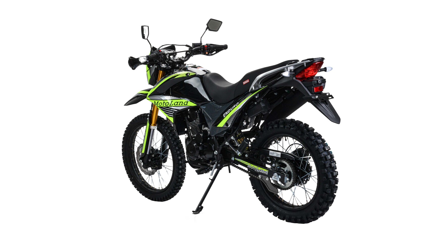 Прочность, мощь и надежность – вот ключевые характеристики кроссового мотоцикла 300 ENDURO ST NEON от бренда MOTOLAND. Этот байк представляет собой идеальное сочетание высоких технологий и безупречного дизайна, созданного для тех, кто стремится преодолевать любые трудности на дороге.Одной из важнейших особенностей этой модели является ее мощный двигатель с рабочим объемом 300 см3 и маркировкой 175 FMN PR5. С мощностью в 25 лошадиных сил и балансирным валом, этот мотоцикл готов преодолевать самые сложные трассы.Что касается трансмиссии, то здесь применена механическая передача с пятью ступенями и цепным ГРМ, что обеспечивает плавное переключение передач и высокую надежность в эксплуатации.Система охлаждения воздушно-масляная, что дает эффективное охлаждение двигателя в самых экстремальных условиях. А при запуске мотоцикла вы сможете воспользоваться как электростартером, так и кикстартером, делая его надежным в любой ситуации.Карбюратор PZ34 и свеча зажигания D8EA гарантируют оптимальную работу двигателя на любых режимах, а использование бензина с октановым числом 92 обеспечивает экономичный расход топлива.Этот мотоцикл оснащен спицованными металлическими колесами размером 90х100 R21 спереди и 110х100 R18 сзади, что обеспечивает отличное сцепление с дорогой и устойчивость на пересеченной местности.Приборная панель выполнена в формате LCD, отображая ярко и четко информацию о состоянии мотоцикла. А линзованная диодная фара и задний стоп-сигнал гарантируют безопасность в ночное время и обозначают ваше присутствие на дороге.