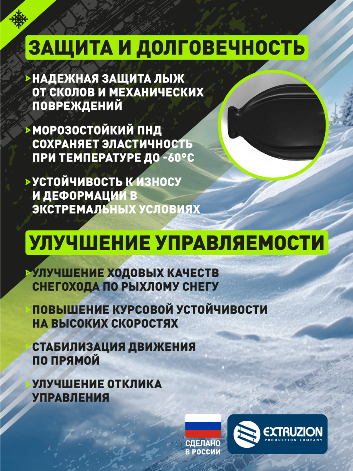 • • Значительное уменьшение износа оригинальных лыж и элементов подвески