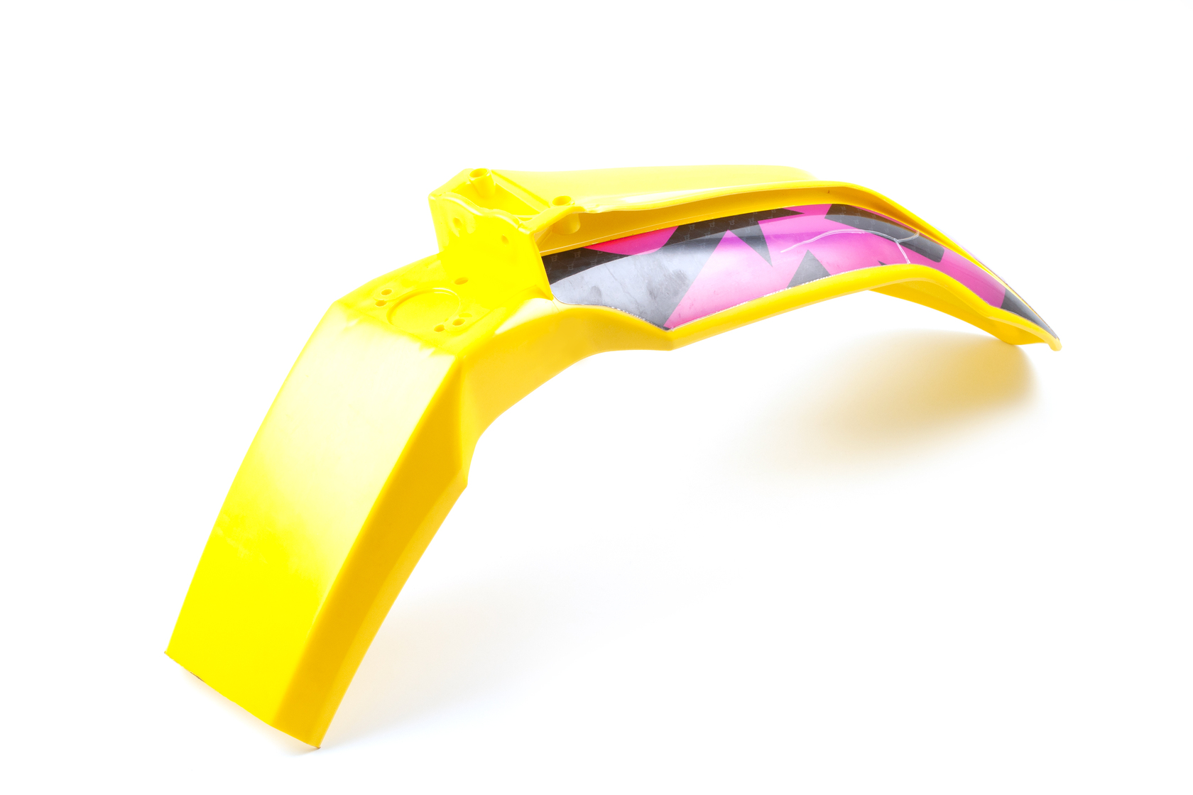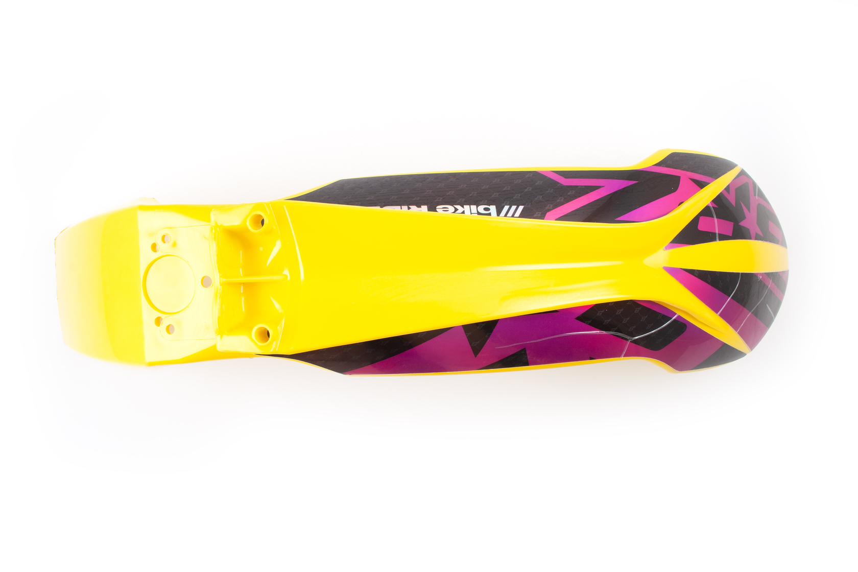 • Ярко-жёлтое переднее крыло с уникальными спортивными наклейками для мотоциклов KTM 2015-2016 года, а также совместимых моделей китайских эндуро на рамах K5, K7, K8. Крыло выполнено из прочного и эластичного пластика современного типа, повторяет форму и размеры оригинальной детали KTM (артикул 7770801000004), быстро и легко устанавливается на штатные места без доработок. Глянцевый жёлтый цвет с оригинальным графическим рисунком (крупные элементы розового, чёрного, надпись "bike RIDE ZONE") отлично выделяет мотоцикл среди других и подчёркивает индивидуальность.