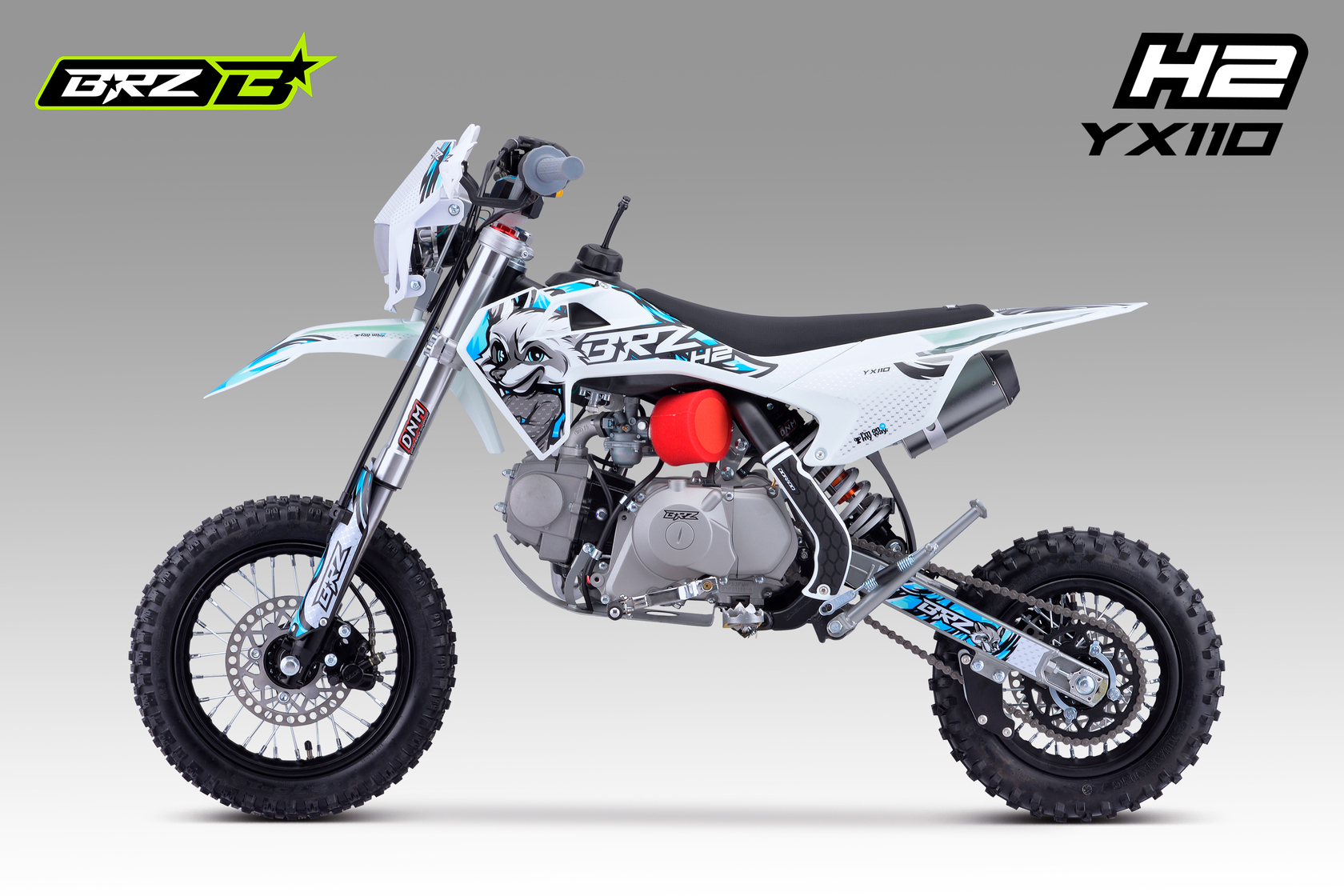 Питбайк BRZ H2 YX110 на полу-автоматической N-1-2-3-4 КПП с электростартером для детей и подростков 8-12 лет.Характеристики:Кубатура – 110cc;