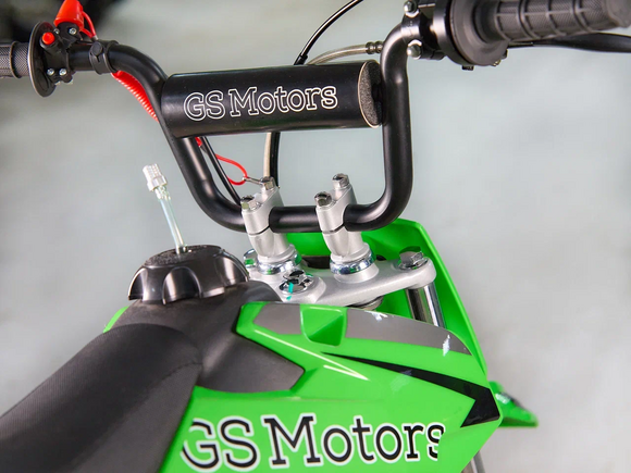 Недорогой надёжный питбайк GS Motors S7 идеален для поездок по грунтовым дорогам и бездорожью для детей которые уже научились ездить на маленьких мотоциклах объемом 50 куб.см. Хорошо чувствует себя на мягком и среднем грунте, разгоняется до 50 км/ч.Питбайк прост в управлении и не требует специального ухода, подойдёт детям до 7 лет.Передняя подвеска — телескопическая нерегулируемая вилка. Задняя подвеска маятниковая с моноамортизатором. Руль 22 мм с высоким подъёмом и перекладиной удобен для мотоциклистов разного роста.Питбайк весит всего 50 кг, при этом выдерживает вес до 60 кг. Колёса спицованные. Размер заднего и переднего колеса — 10 дюймов. Тормоза дисковые, передний тормозной суппорт двухпоршневой, задний — однопоршневой.Питбайк оснащён карбюратором с фильтром нулевого сопротивления и одноцилиндровым четырёхтактным двигателем с воздушным охлаждением. Надёжный мотор мощностью 5 л. с. и объемом 70 см³. Трансмиссия - четырехступенчатая. Система зажигания электронная (CDI), запуска двигателя - кикстартер.Питбайк относится к недорогим моделям, которые при должной эксплуатации работают без сбоев, неприхотлив в обслуживании, не занимает много места в гараже.
