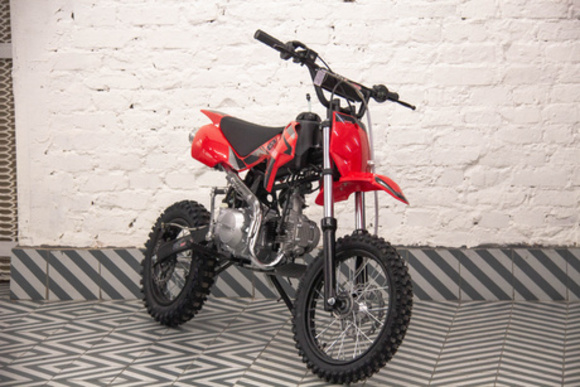 Недорогой надёжный питбайк JX125 E идеален для поездок по грунтовым дорогам и бездорожью. Хорошо чувствует себя на мягком и среднем грунте. Питбайк прост в управлении и не требует специального ухода, подойдёт как новичкам, так и любителям мотокросса.У питбайк отличный узнаваемый дизайн. Конструкция подчёркивает неуступчивый спортивный характер, который не остановится ни перед одним препятствием. Пластик комбинированный, прочный, не ломается при сгибании.Передняя подвеска — телескопическая нерегулируемая вилка перевёрнутого типа, которая отлично подходит для преодоления ям, ухабов и других неровностей плохих дорог или их отсутствия. Задняя подвеска маятниковая с моноамортизатором. Питбайк весит всего 75 кг, выдерживает вес до 90 кг. Оснащён CNC траверсами, рама полудуплексная стальная, мотоцепь качественная. Колёса спицованные, металлические. Размер заднего колеса — 14 дюймов, переднего — 17 дюйм. Тормоза дисковые, передний тормозной суппорт двухпоршневой, задний — однопоршневой.Питбайк оснащён карбюратором NIBBI PE n24 и одноцилиндровым четырёхтактным двигателем с воздушным охлаждением. Надёжный мотор мощностью 8 л. с. и объемом 125 см³ разгоняет питбайк до 90 км/ч. Коробка передач механическая, четырёхступенчатая. Система зажигания электронная (CDI). Запуска двигателя - электростартер, кикстартер.Покрышки с шипами и высоким грунтозацепом идеальны для бездорожья. Мощность мотора и небольшой вес питбайка позволяют ему преодолевать значительные препятствия и непролазную грязь, хорошо заходить в подъёмы.Для поездок при низкой видимости и в ночное время суток питбайк оснащён LED фарой.Питбайк относится к недорогим моделям, которые при должной эксплуатации работают без сбоев и капризов. Неприхотлив в обслуживании, не занимает много места в гараже. При необходимости в нём легко сменить любую повреждённую деталь.