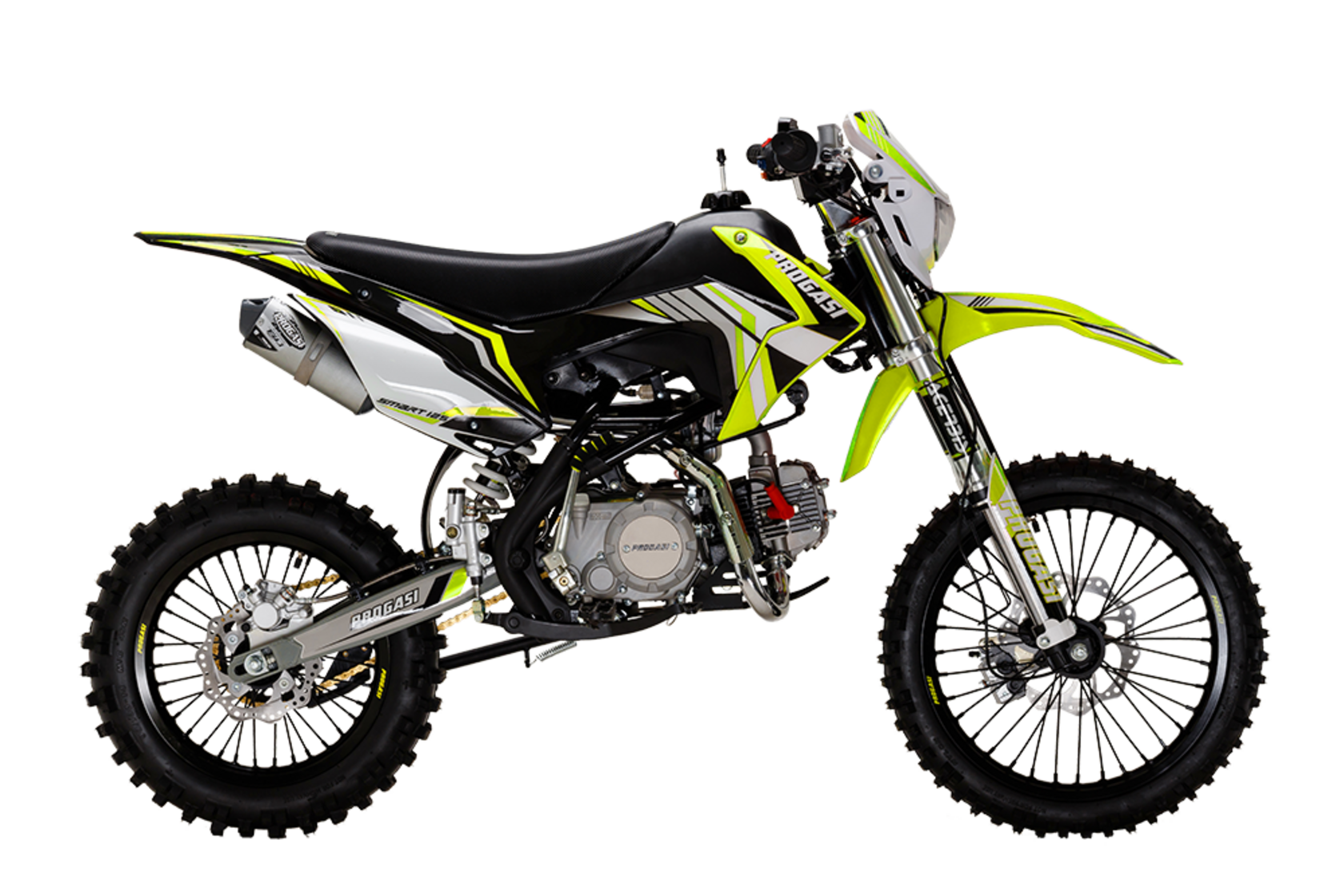 PROGASI Smart 125 2023 модельного года представляет собой максимально доработанную версию уже зарекомендовавшего себя питбайка. Максимум мощности и максимум спортивности! Внимание к деталям заложено в ДНК этого пита. Новая графика, порошковая окраска рамы, USB, новые усиленные тормоза, ручка газа Nibbi Racing и многое другое уже установлено в твоем новом питбайке от PROGASI.Сиденье по технологии AcerbisФирменное нескользящее сиденье PROGASI, выполненное по технологии Acerbis anti-slip grip, держит любого райдера как суперклей: специальное ребристое водонепроницаемое покрытие позволяет чувствовать себя комфортно в любых погодных условиях.Дополнительный расширительный бачок тормозовТормоза – это важнейший компонент питбайка, от которого напрямую зависит безопасность райдера, а также скорость прохождения поворотов. Для безупречного результата на всех моделях PROGASI установлены дополнительные расширительные бачки и армированные шланги тормозной системы. Спереди установлена 2-поршневая тормозная система и 1-поршневая сзади.Брендированный алюминиевый глушитель PROGASI выполнен с сеткой без узкой флейты, как у полноразмерных кроссовых мотоциклов. Добавлен резонатор Megabomb: увеличение мощности c нижнего до среднего диапазона оборотов и более "сочный" звук двигателя.Проверенное качествоВсе мотоциклы PROGASI имеют Европейский сертификат качества. С завода залито масло Shell 10w40. Применяются влагозащищенные разъемы проводки. Все подшипники обработаны специальной консистентной смазкой. «Details matter» (“Детали имеют значение”) - слоган рожденной в Каталонии компании PROGASI.