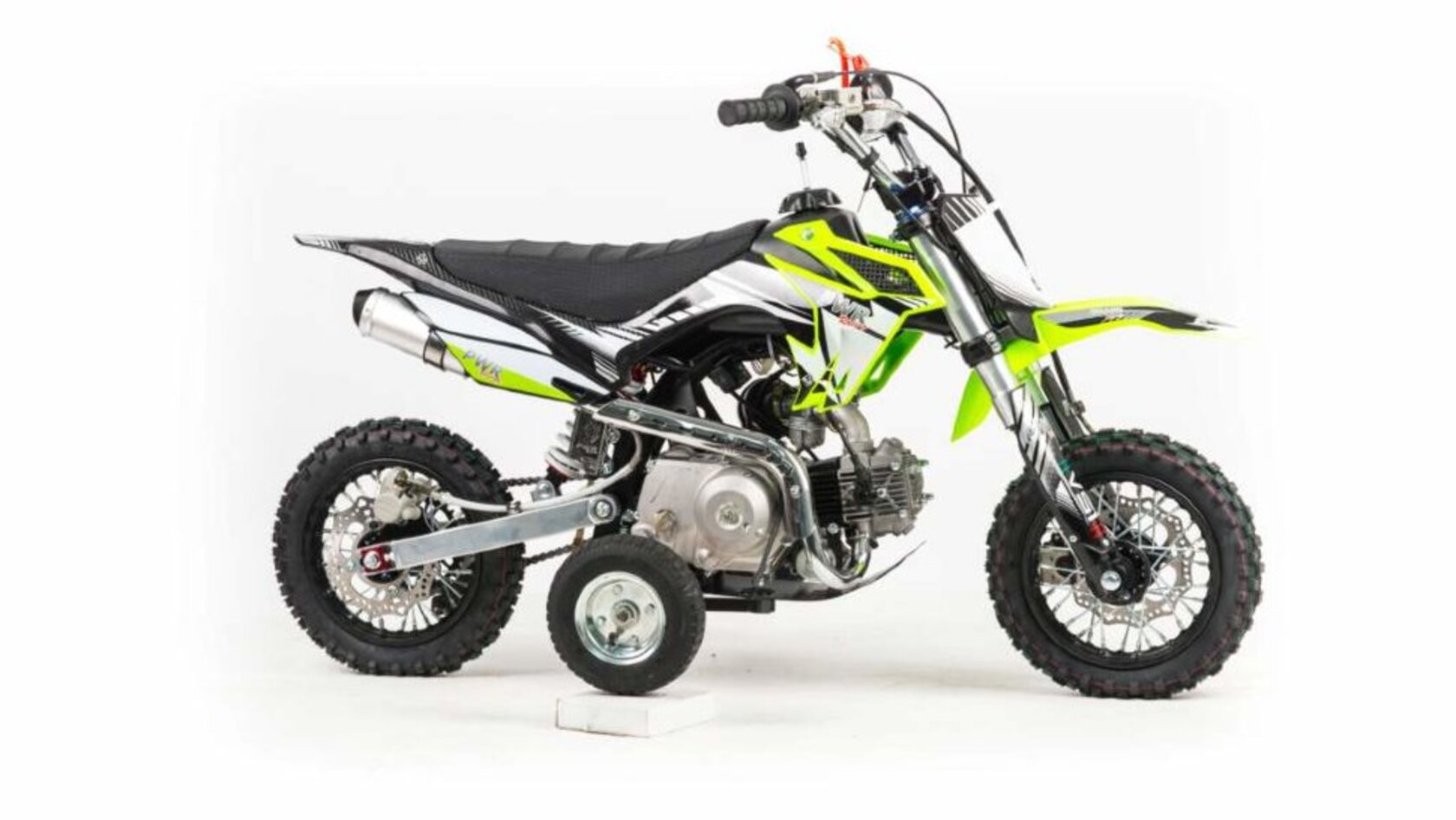 Маленький, компактный, но простой, с приятным внешним видом.Разработанный как первый мотоцикл для вашего ребенка.Двигатель с автоматической трансмиссией, который не требует переключения скоростей и выжима сцеплений, просто повернул газ и поехал, так же имеется электростартер который облегчает запуск двигателя.Безопасность на детском велосипеде - это обязательная функция: чека безопасности, которая выключает зажигание, если ваш ребенок упадет или слезет с мотоцикла, в сочетании с регулируемым ограничителем газа обеспечивает полный родительский контроль над велосипедом. Так-же имеются дополнительные колеса поддержки, для самых юных гонщиков.