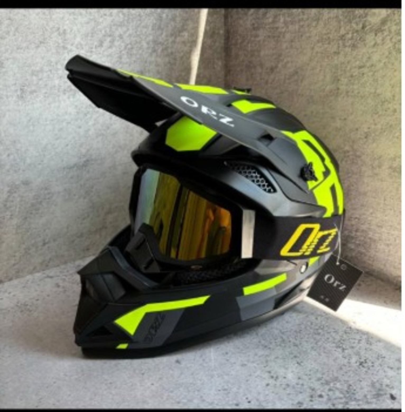 Шлем кроссовый ORZ, Черный/Серый/Желтый, M (в комплекте с очками 100%)