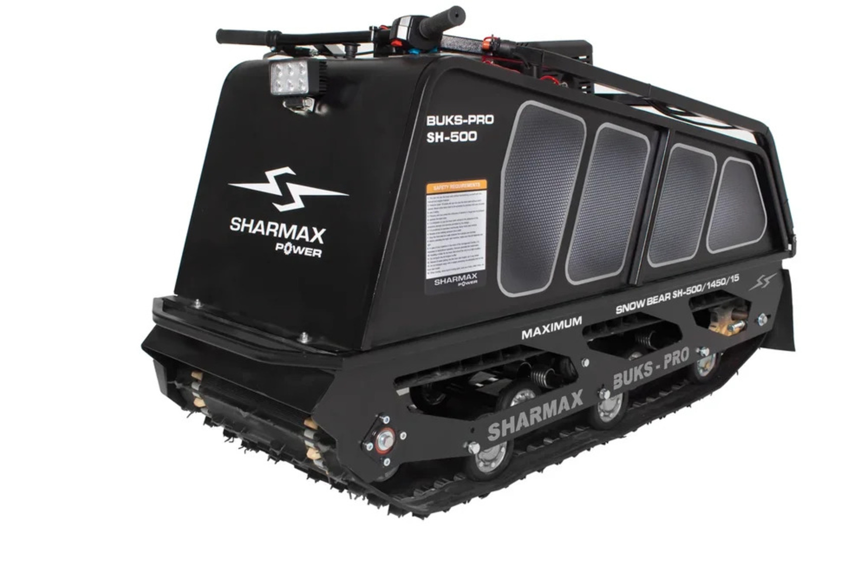 Мотобуксировщик SNOWBEAR SE500 1450 HP15 MAXIMUM настоящий помощник на охоте и рыбалке, решит множество задач в сельскохозяйственной деятельности. Идеальное сочетание цены и качества.Гусеница мотобуксировщиков “Sharmax” шириной 500 мм является надежной и универсальной. Обладает повышенной стойкостью к износу, а специальная форма протектора дает отличное сцепление с поверхностью, при этом сохраняя уверенную маневренность мотобуксировщика..
